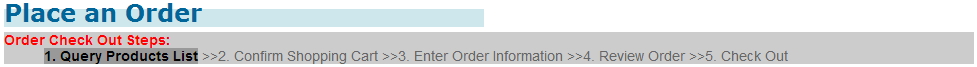 There are 5 steps to check out an order. To direct you go through the process, we have the information on web page which looks like the picture below.