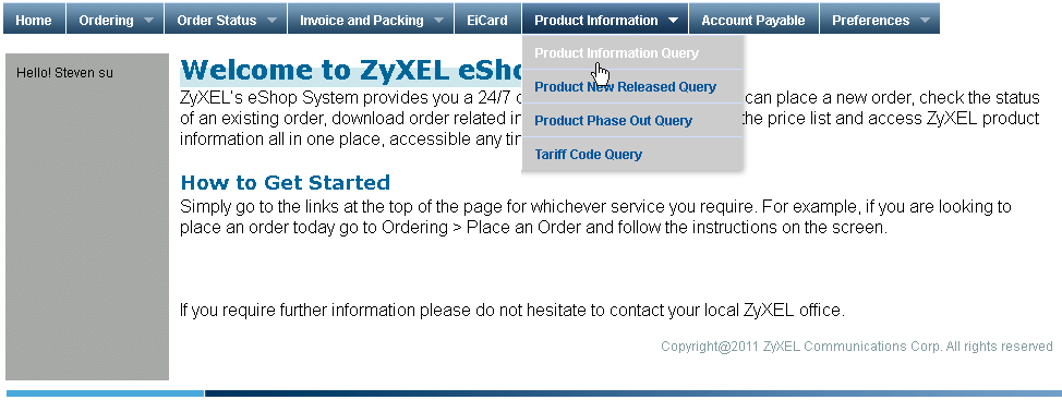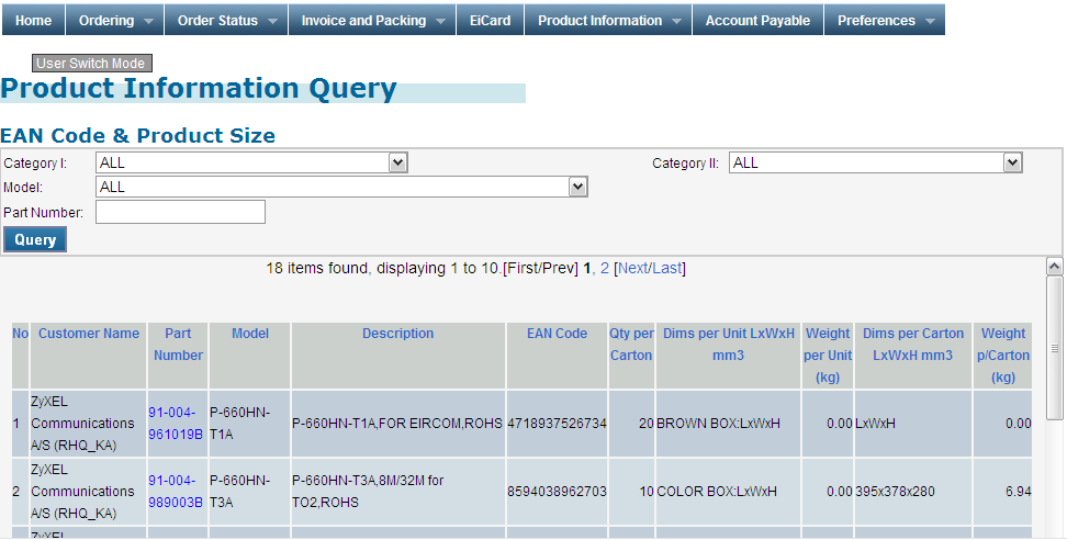1. Please find and click on the "Product Information Query" options under "Product Information" tab on menu bar.
