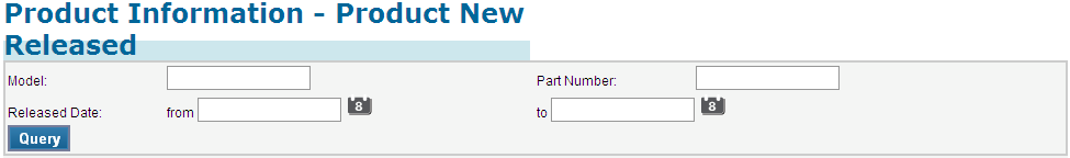 2. You will see a form that looks like the picture below. You can set some search criteria by Model , Part Number and Released Date.