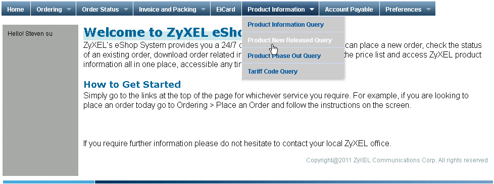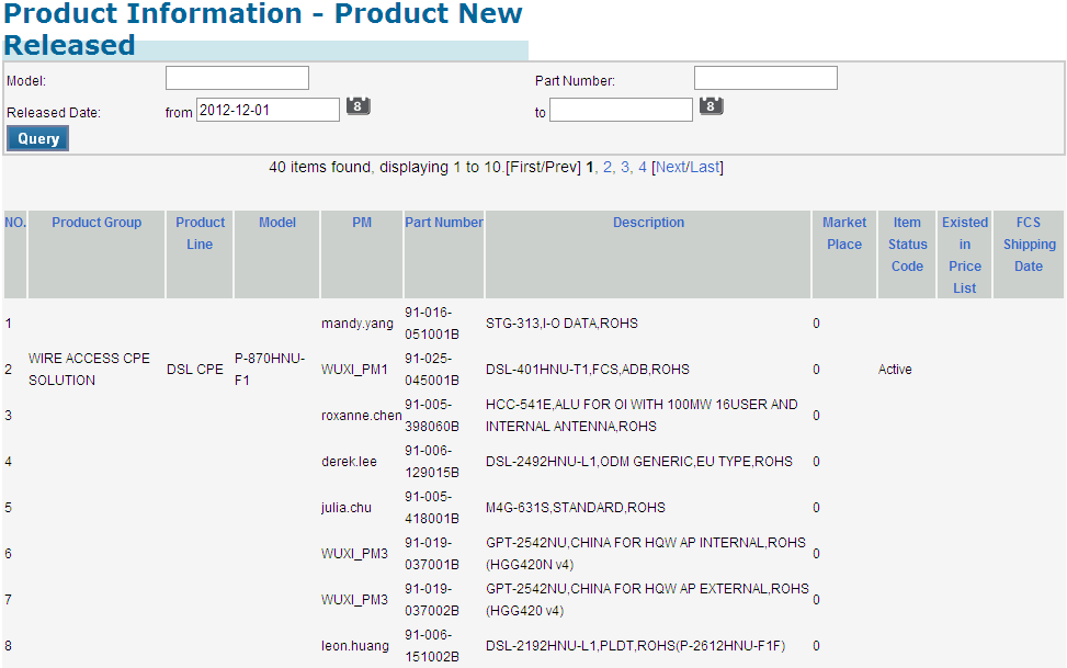1. Please find and click on the "Product New Released Query" options under "Product Information" tab on menu bar.