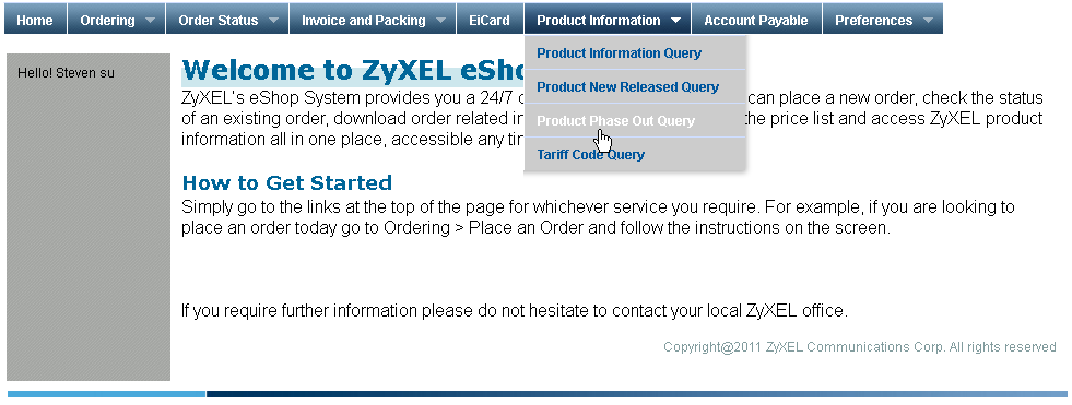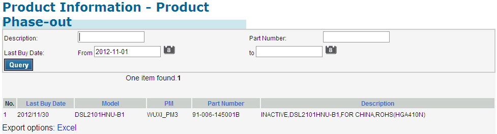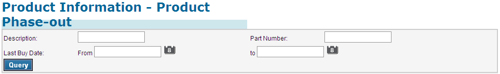 1. Please find and click on the "Product Phase Out Query" options under "Product Information" tab on menu bar.
